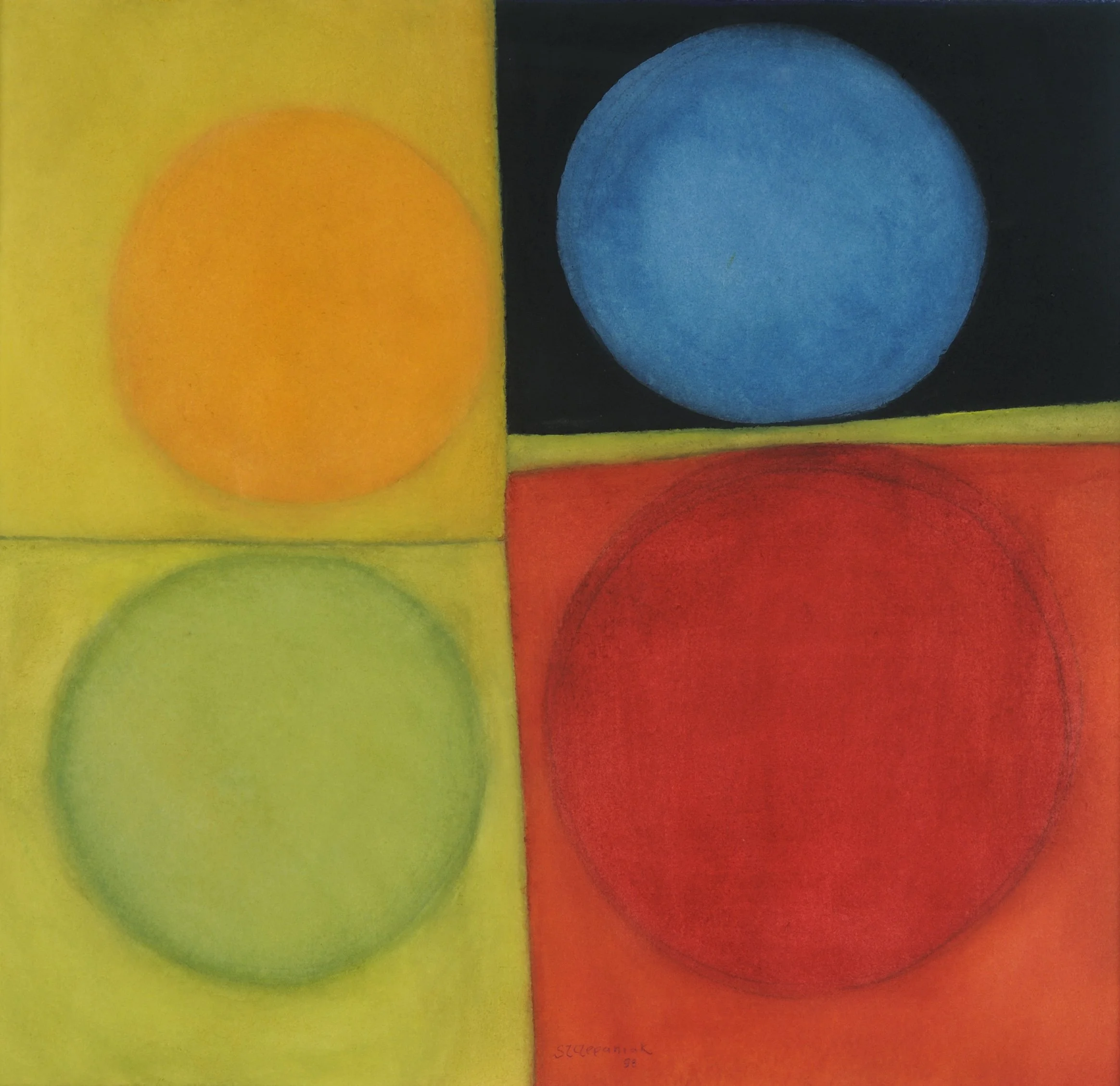Referring to these paintings, Art Historian Alice Gauvin states “Animated by Szczepaniak’s painstaking application of color and her ingrained understanding of the dynamics space, the forms she depicts take on a life of their own before our eyes: expanding, receding, pulsing, breathing.”
